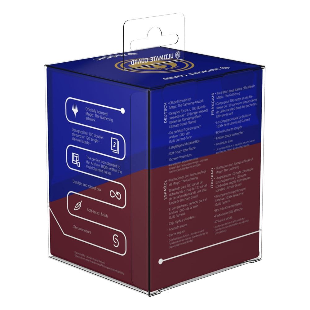Ultimate Guard feiert eine der ikonischsten und beliebtesten Planes in der Geschichte von Magic: The Gathering mit der „Guild Summit“-Serie: Zehn edle Boulder 100+ mit dem goldenen Wappen jeder Gilde auf der semidurchsichtigen Deck-Box mit seidigem Soft-Touch-Finish. Der Boulder 100+ bietet Platz für bis zu 100 doppelt gesleevete Karten und ist damit das perfekte Zuhause für dein zweifarbiges Commander-Deck! Verpasse auch nicht den atemberaubenden Arkhive 1000+ Xenoskin aus der „Guild Summit“-Serie, der der perfekte Aufbewahrungsort für bis zu zehn Boulder 100+ ist.